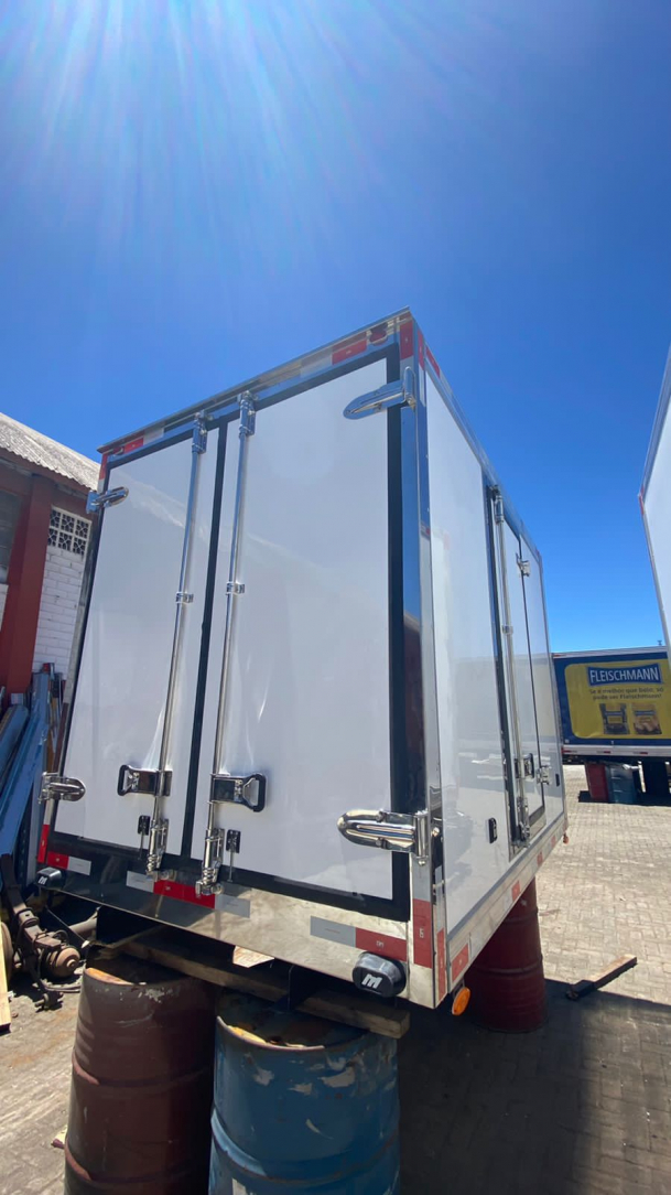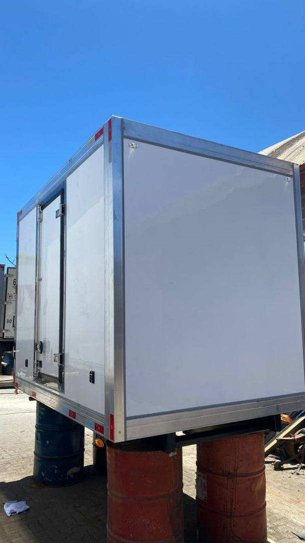 Baú HR/KIA - LISO Mercosul – 2022 - NOVO Liso – 2.80 MT 2 Porta Traseira 1 Porta Lateral Piso Canaletado- Instalado no Caminhão: Grampos e Elétrica.